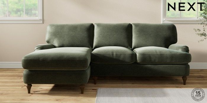 7.0.3 Buy Sadie Deep Relaxed Sit Medium Sofa Chaise - Left Hand Luxe Chenille Mid Green High Slim Turned - Mid from the Laura Ashley online shop Click here to use our website with more accessibility support, for example screen readers