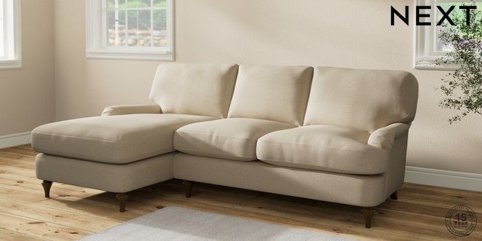 6.12.1 Buy Sadie Deep Relaxed Sit Medium Sofa Chaise - Left Hand Natural Mix Light Natural High Slim Turned - Mid from the Laura Ashley online shop Click here to use our website with more accessibility support, for example screen readers