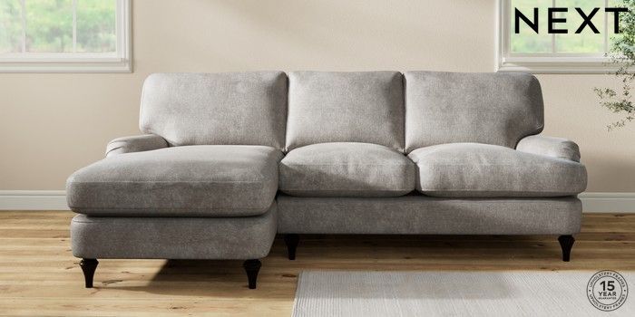 7.0.3 Buy Sadie Deep Relaxed Sit Medium Sofa Chaise - Left Hand Plush Chenille Light Grey High Slim Turned - Dark from the Laura Ashley online shop Click here to use our website with more accessibility support, for example screen readers