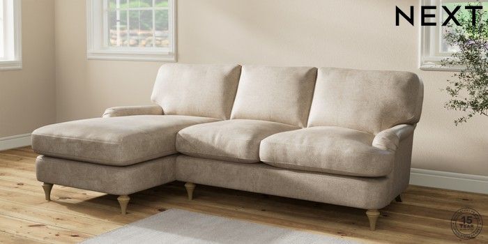6.12.1 Buy Sadie Deep Relaxed Sit Medium Sofa Chaise - Left Hand Plush Chenille Light Natural High Slim Turned - Light from the Laura Ashley online shop Click here to use our website with more accessibility support, for example screen readers