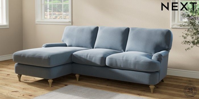 6.12.1 Buy Sadie Deep Relaxed Sit Medium Sofa Chaise - Left Hand Relaxed Linen Look Mid Blue High Slim Turned - Light from the Laura Ashley online shop Click here to use our website with more accessibility support, for example screen readers