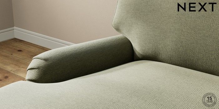 7.0.3 Buy Sadie Deep Relaxed Sit Medium Sofa Chaise - Left Hand Ripple Chenille Mid Moss Green High Slim Turned - Dark Brown from the Laura Ashley online shop Click here to use our website with more accessibility support, for example screen readers
