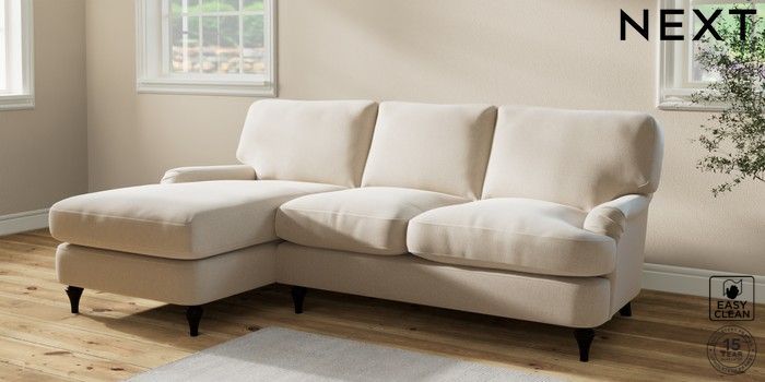 6.12.1 Buy Sadie Deep Relaxed Sit Medium Sofa Chaise - Left Hand Tweedy Blend Easy Clean Oyster High Slim Turned - Dark from the Laura Ashley online shop Click here to use our website with more accessibility support, for example screen readers