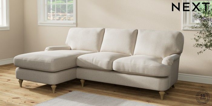 6.12.1 Buy Sadie Deep Relaxed Sit Medium Sofa Chaise - Left Hand Tweedy Chenille Oyster High Slim Turned - Light from the Laura Ashley online shop Click here to use our website with more accessibility support, for example screen readers