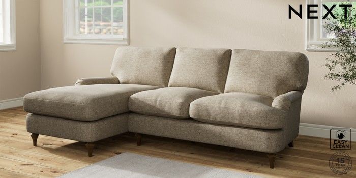 6.12.1 Buy Sadie Deep Relaxed Sit Medium Sofa Chaise - Left Hand Woven Chenille Easy Clean Mid Natural High Slim Turned - Mid from the Laura Ashley online shop Click here to use our website with more accessibility support, for example screen readers