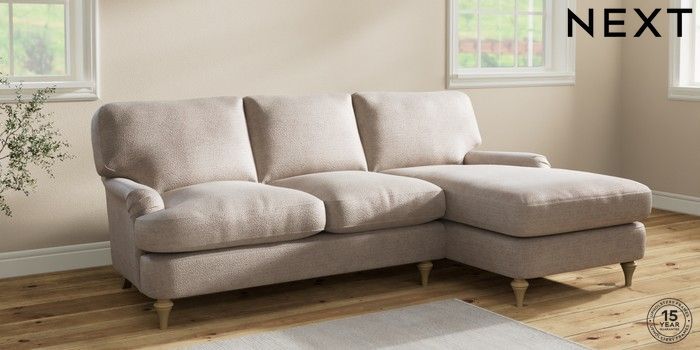6.12.1 Buy Sadie Deep Relaxed Sit Medium Sofa Chaise - Right Hand Boucle Chenille Light Natural High Slim Turned - Light from the Laura Ashley online shop Click here to use our website with more accessibility support, for example screen readers