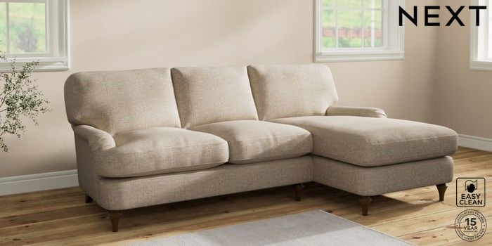 6.12.1 Buy Sadie Deep Relaxed Sit Medium Sofa Chaise - Right Hand Boucle Weave Easy Clean Dark Natural High Slim Turned - Mid from the Laura Ashley online shop Click here to use our website with more accessibility support, for example screen readers