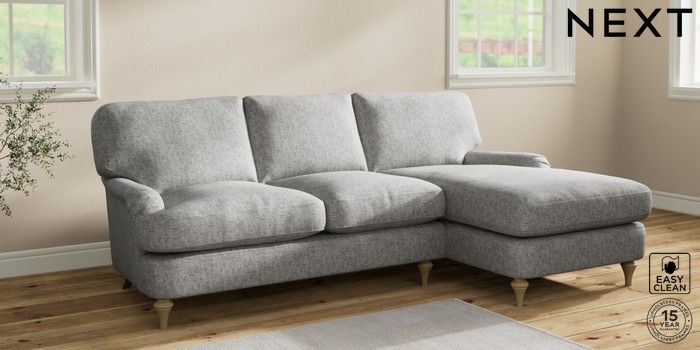 6.12.1 Buy Sadie Deep Relaxed Sit Medium Sofa Chaise - Right Hand Chunky Boucle Easy Clean Light Grey High Slim Turned - Light from the Laura Ashley online shop Click here to use our website with more accessibility support, for example screen readers