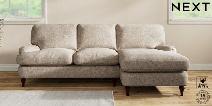 7.0.3 Buy Sadie Deep Relaxed Sit Medium Sofa Chaise - Right Hand Chunky Boucle Easy Clean Mid Natural High Slim Turned - Dark Brown from the Laura Ashley online shop Click here to use our website with more accessibility support, for example screen readers