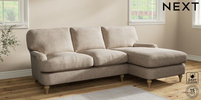 6.12.1 Buy Sadie Deep Relaxed Sit Medium Sofa Chaise - Right Hand Chunky Boucle Easy Clean Mid Natural High Slim Turned - Light from the Laura Ashley online shop Click here to use our website with more accessibility support, for example screen readers