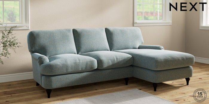 6.12.1 Buy Sadie Deep Relaxed Sit Medium Sofa Chaise - Right Hand Chunky Marl Mid Blue High Slim Turned - Dark from the Laura Ashley online shop Click here to use our website with more accessibility support, for example screen readers