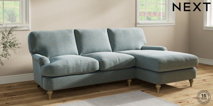 6.12.1 Buy Sadie Deep Relaxed Sit Medium Sofa Chaise - Right Hand Chunky Marl Mid Blue High Slim Turned - Light from the Laura Ashley online shop Click here to use our website with more accessibility support, for example screen readers