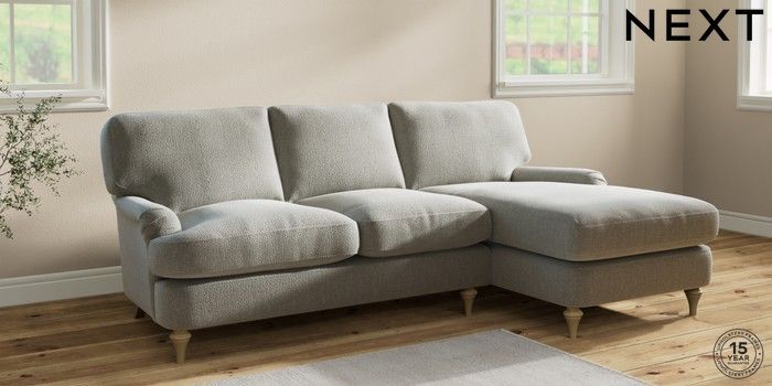 6.12.1 Buy Sadie Deep Relaxed Sit Medium Sofa Chaise - Right Hand Chunky Texture Dove High Slim Turned - Light from the Laura Ashley online shop Click here to use our website with more accessibility support, for example screen readers