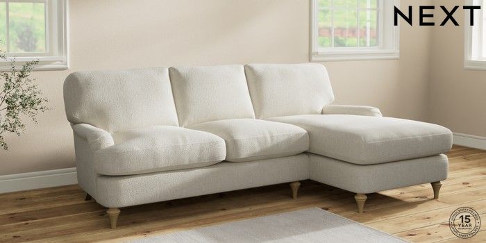 6.12.1 Buy Sadie Deep Relaxed Sit Medium Sofa Chaise - Right Hand Chunky Texture Oyster High Slim Turned - Light from the Laura Ashley online shop Click here to use our website with more accessibility support, for example screen readers