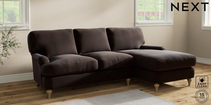 6.12.1 Buy Sadie Deep Relaxed Sit Medium Sofa Chaise - Right Hand Fine Chenille Easy Clean Chocolate Brown High Slim Turned - Light from the Laura Ashley online shop Click here to use our website with more accessibility support, for example screen readers