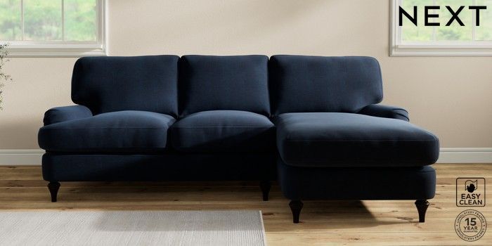 7.0.3 Buy Sadie Deep Relaxed Sit Medium Sofa Chaise - Right Hand Fine Chenille Easy Clean Dark Navy Blue High Slim Turned - Dark from the Laura Ashley online shop Click here to use our website with more accessibility support, for example screen readers