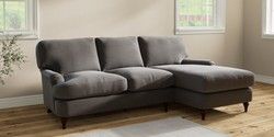 6.12.1 Buy Sadie Deep Relaxed Sit Medium Sofa Chaise - Right Hand Fine Chenille Easy Clean Dark Smoke Grey High Slim Turned - Dark Brown from the Laura Ashley online shop Click here to use our website with more accessibility support, for example screen readers