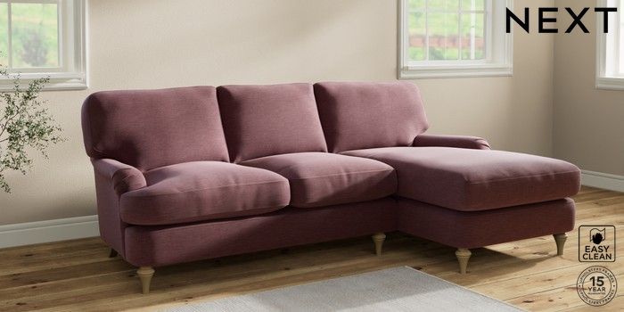 6.12.1 Buy Sadie Deep Relaxed Sit Medium Sofa Chaise - Right Hand Fine Chenille Easy Clean Mid Mulberry Purple High Slim Turned - Light from the Laura Ashley online shop Click here to use our website with more accessibility support, for example screen readers