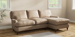 6.12.1 Buy Sadie Deep Relaxed Sit Medium Sofa Chaise - Right Hand Luxe Chenille Mid Camel Beige High Slim Turned - Mid from the Laura Ashley online shop Click here to use our website with more accessibility support, for example screen readers