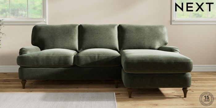 7.0.3 Buy Sadie Deep Relaxed Sit Medium Sofa Chaise - Right Hand Luxe Chenille Mid Green High Slim Turned - Mid from the Laura Ashley online shop Click here to use our website with more accessibility support, for example screen readers