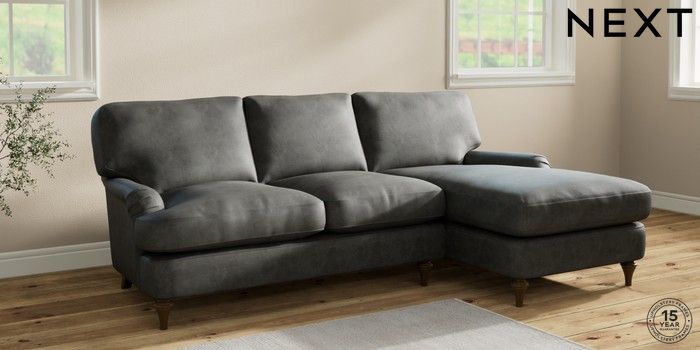 6.12.1 Buy Sadie Deep Relaxed Sit Medium Sofa Chaise - Right Hand Monza Faux Leather Easy Clean Dark Grey High Slim Turned - Mid from the Laura Ashley online shop Click here to use our website with more accessibility support, for example screen readers