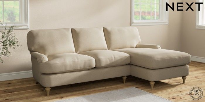 6.12.1 Buy Sadie Deep Relaxed Sit Medium Sofa Chaise - Right Hand Natural Mix Light Natural High Slim Turned - Light from the Laura Ashley online shop Click here to use our website with more accessibility support, for example screen readers
