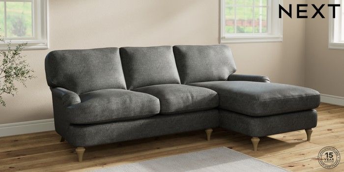 6.12.1 Buy Sadie Deep Relaxed Sit Medium Sofa Chaise - Right Hand Plush Chenille Dark Grey High Slim Turned - Light from the Laura Ashley online shop Click here to use our website with more accessibility support, for example screen readers