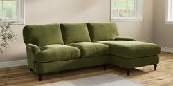 6.12.1 Buy Sadie Deep Relaxed Sit Medium Sofa Chaise - Right Hand Plush Velvet Easy Clean Mid Olive Green High Slim Turned - Dark Brown from the Laura Ashley online shop Click here to use our website with more accessibility support, for example screen readers