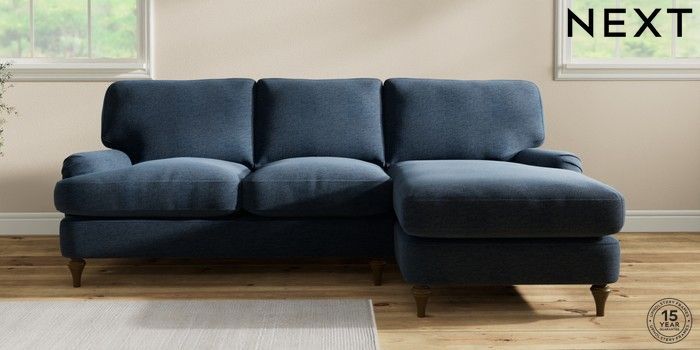 7.0.3 Buy Sadie Deep Relaxed Sit Medium Sofa Chaise - Right Hand Ripple Chenille Dark Blue High Slim Turned - Mid from the Laura Ashley online shop Click here to use our website with more accessibility support, for example screen readers