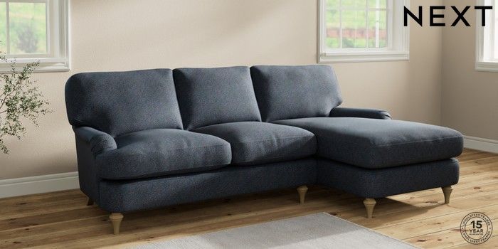 6.12.1 Buy Sadie Deep Relaxed Sit Medium Sofa Chaise - Right Hand Tweedy Chenille Navy Blue High Slim Turned - Light from the Laura Ashley online shop Click here to use our website with more accessibility support, for example screen readers