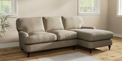 6.12.1 Buy Sadie Deep Relaxed Sit Medium Sofa Chaise - Right Hand Woven Chenille Easy Clean Mid Natural High Slim Turned - Dark Brown from the Laura Ashley online shop Click here to use our website with more accessibility support, for example screen readers