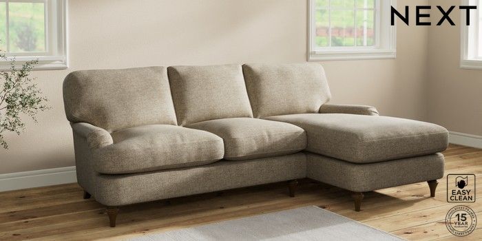 6.12.1 Buy Sadie Deep Relaxed Sit Medium Sofa Chaise - Right Hand Woven Chenille Easy Clean Mid Natural High Slim Turned - Mid from the Laura Ashley online shop Click here to use our website with more accessibility support, for example screen readers