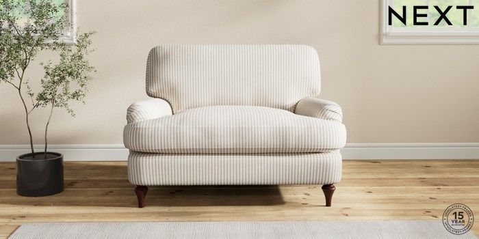 6.12.1 Buy Sadie Deep Relaxed Sit Snuggle Chenille Stripe Natural High Slim Turned - Dark Brown from the Laura Ashley online shop Click here to use our website with more accessibility support, for example screen readers