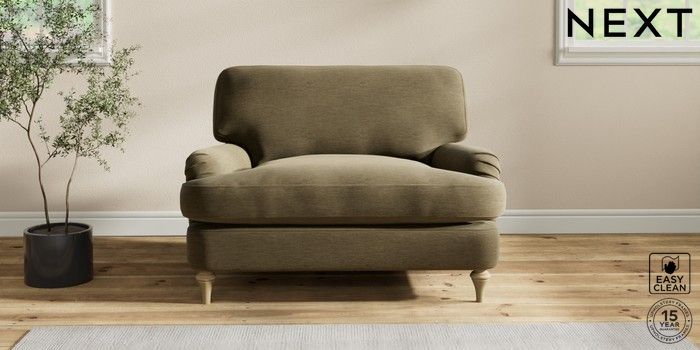 6.12.1 Buy Sadie Deep Relaxed Sit Snuggle Fine Chenille Easy Clean Dark Moss Green High Slim Turned - Light from the Laura Ashley online shop Click here to use our website with more accessibility support, for example screen readers