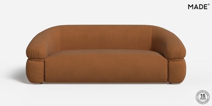 The Soma sofa beautifully reimagines 70s-inspired design with a contemporary, organic sensibility. This sofa is defined by its lovely large curves, creating a welcoming and naturally flowing silhouette that adds a unique aesthetic to any space. Attention to detail is evident in the piped, pinched-in detail adorning the arms and wrapping elegantly around the entire back of the sofa, showcasing its exceptional craftsmanship. Further enhancing its distinctive look is the pinched organic pleat detail, a truly captivating feature that adds texture and character. Experience a new level of comfort with the Soma's innovative seating. Our new feather topper adds an extra layer of luxurious softness. Used alongside the robust fibre and foam core, this feature ensures not only a sumptuously comfortable sit but also excellent recovery, meaning your seat will beautifully maintain its shape over time.