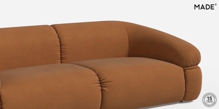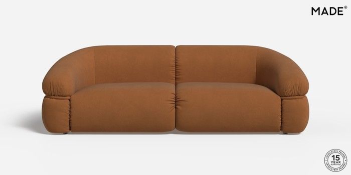The Soma sofa beautifully reimagines 70s-inspired design with a contemporary, organic sensibility. This sofa is defined by its lovely large curves, creating a welcoming and naturally flowing silhouette that adds a unique aesthetic to any space. Attention to detail is evident in the piped, pinched-in detail adorning the arms and wrapping elegantly around the entire back of the sofa, showcasing its exceptional craftsmanship. Further enhancing its distinctive look is the pinched organic pleat detail, a truly captivating feature that adds texture and character. Experience a new level of comfort with the Soma's innovative seating. Our new feather topper adds an extra layer of luxurious softness. Used alongside the robust fibre and foam core, this feature ensures not only a sumptuously comfortable sit but also excellent recovery, meaning your seat will beautifully maintain its shape over time.
