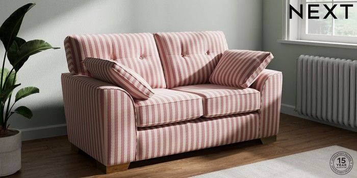 7.3.1 Buy Stamford Buttoned Back 2 Seater Small Sofa Bold Chenille Stripe Dark Pink Large Square Angle - Brushed Brass from the Laura Ashley online shop Click here to use our website with more accessibility support, for example screen readers
