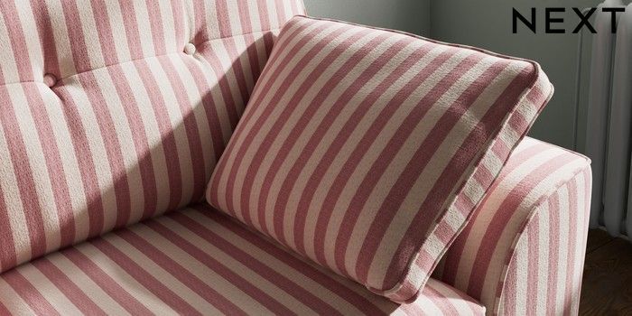 7.3.1 Buy Stamford Buttoned Back 2 Seater Small Sofa Bold Chenille Stripe Dark Pink Large Square Angle - Chrome Metal from the Laura Ashley online shop Click here to use our website with more accessibility support, for example screen readers