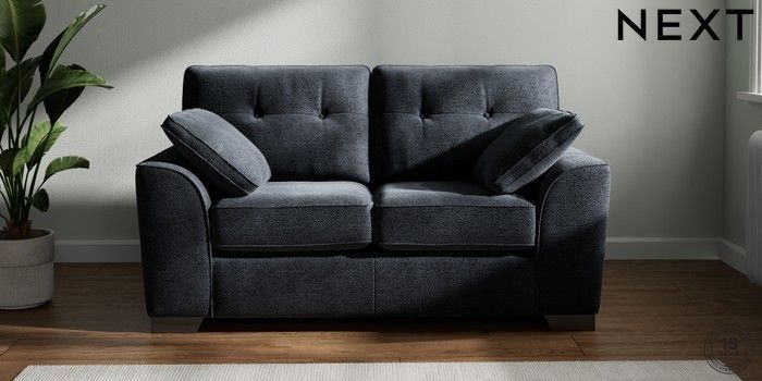 7.2.6 Buy Stamford Buttoned Back 2 Seater Small Sofa Boucle Chenille Dark Slate Blue Large Square Angle - Gunmetal from the Laura Ashley online shop Click here to use our website with more accessibility support, for example screen readers