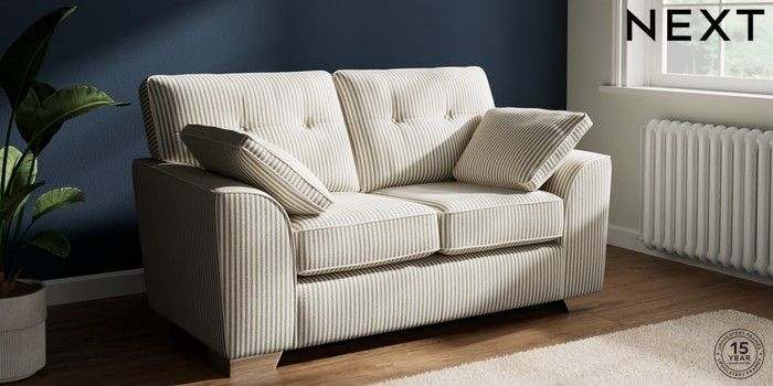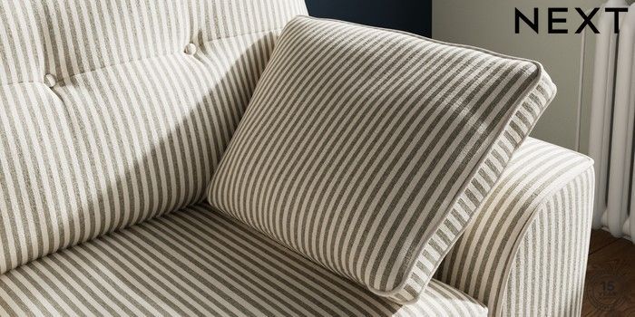 7.3.1 Buy Stamford Buttoned Back 2 Seater Small Sofa Chenille Stripe Moss Green Large Square Angle - Chrome Metal from the Laura Ashley online shop Click here to use our website with more accessibility support, for example screen readers