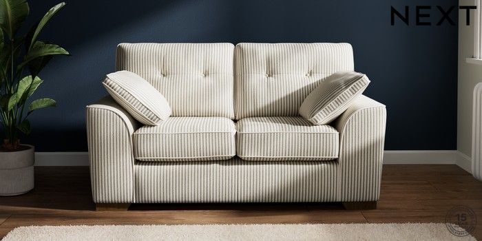 7.3.1 Buy Stamford Buttoned Back 2 Seater Small Sofa Chenille Stripe Moss Green Large Square Angle - Mid from the Laura Ashley online shop Click here to use our website with more accessibility support, for example screen readers