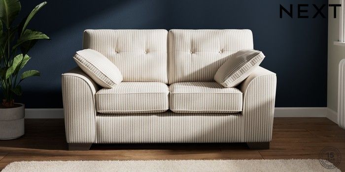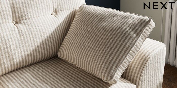 7.3.1 Buy Stamford Buttoned Back 2 Seater Small Sofa Chenille Stripe Natural Large Square Angle - Gunmetal from the Laura Ashley online shop Click here to use our website with more accessibility support, for example screen readers