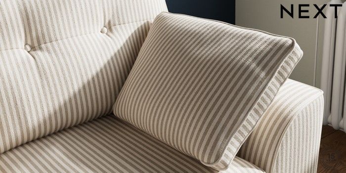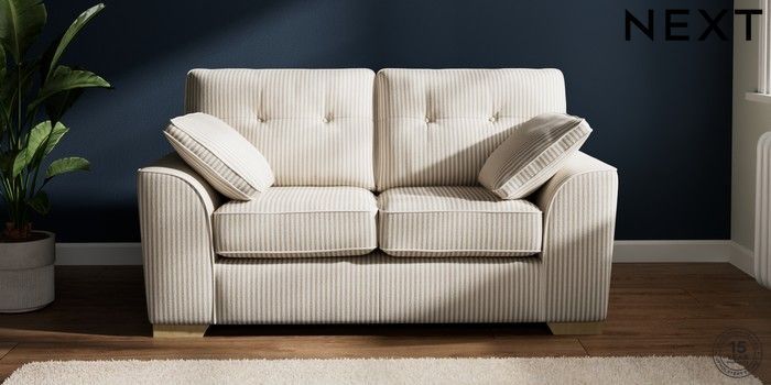7.3.1 Buy Stamford Buttoned Back 2 Seater Small Sofa Chenille Stripe Natural Large Square Angle - Light from the Laura Ashley online shop Click here to use our website with more accessibility support, for example screen readers