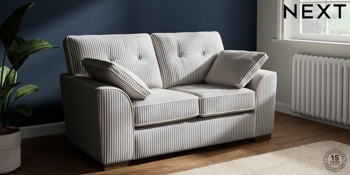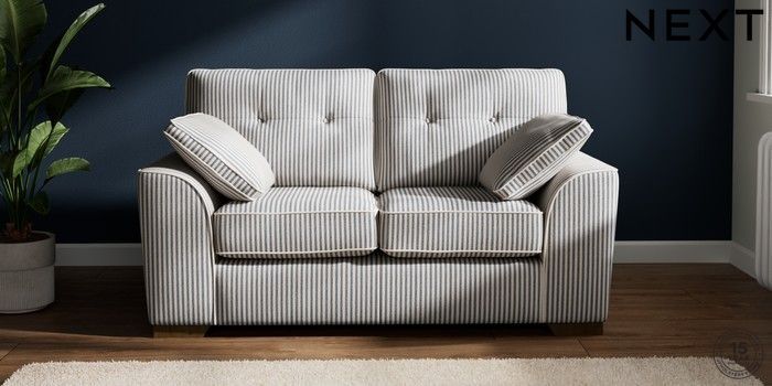 7.3.1 Buy Stamford Buttoned Back 2 Seater Small Sofa Chenille Stripe Slate Blue Large Square Angle - Mid from the Laura Ashley online shop Click here to use our website with more accessibility support, for example screen readers