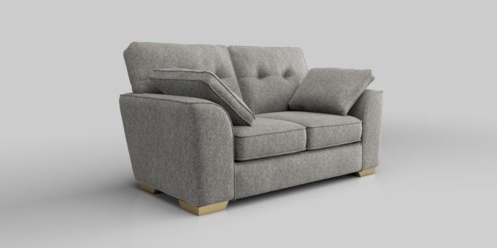 6.12.1 Buy Stamford Buttoned Back 2 Seater Small Sofa Cotswold Chenille Silver Grey Large Square Angle - Brushed Brass from the Laura Ashley online shop Click here to use our website with more accessibility support, for example screen readers