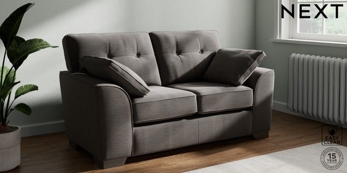 7.2.6 Buy Stamford Buttoned Back 2 Seater Small Sofa Fine Chenille Easy Clean Dark Smoke Grey Large Square Angle - Gunmetal from the Laura Ashley online shop Click here to use our website with more accessibility support, for example screen readers