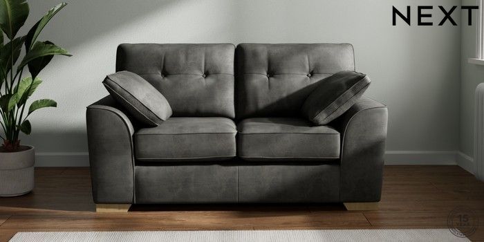 7.2.6 Buy Stamford Buttoned Back 2 Seater Small Sofa Monza Faux Leather Easy Clean Dark Grey Large Square Angle - Light from the Laura Ashley online shop Click here to use our website with more accessibility support, for example screen readers