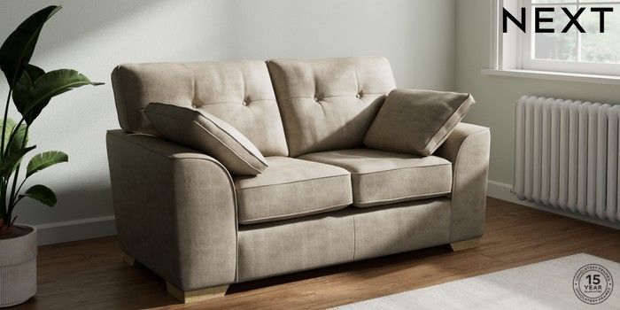 7.2.6 Buy Stamford Buttoned Back 2 Seater Small Sofa Monza Faux Leather Easy Clean Mink Brown Large Square Angle - Light from the Laura Ashley online shop Click here to use our website with more accessibility support, for example screen readers