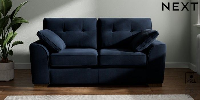 7.2.6 Buy Stamford Buttoned Back 2 Seater Sofa Fine Chenille Easy Clean Dark Navy Blue Large Square Angle - Mid from the Laura Ashley online shop Click here to use our website with more accessibility support, for example screen readers