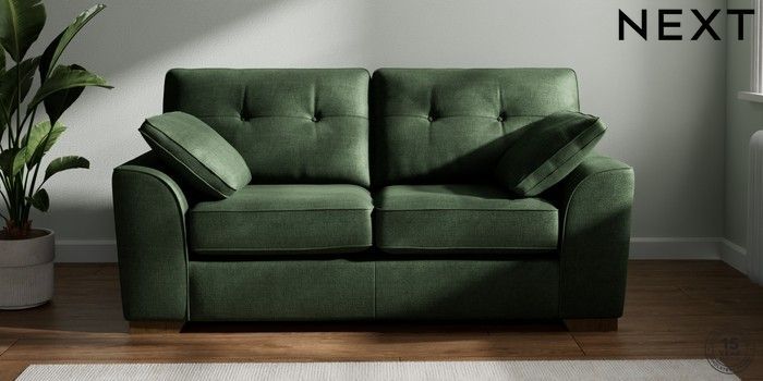 7.2.6 Buy Stamford Buttoned Back 2 Seater Sofa Luxe Chenille Dark Green Large Square Angle - Mid from the Laura Ashley online shop Click here to use our website with more accessibility support, for example screen readers